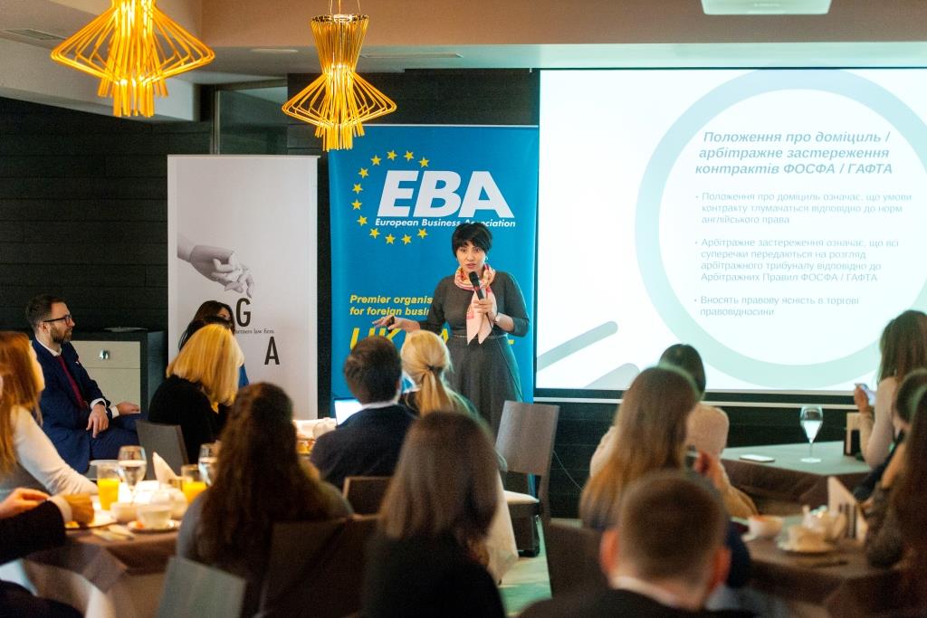 Irina Moroz, Partner at AGA Partners, in her speech told about the actions of the authorities and third parties in Ukraine that can affect the execution of the trade contract, the incorporation of EU quality standards in contracts and the existing risks for Ukrainian sellers.